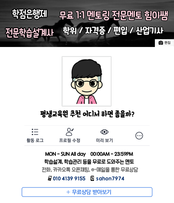 평생교육원 추천을 제대로 해 줄 멘토가 필요합니다.