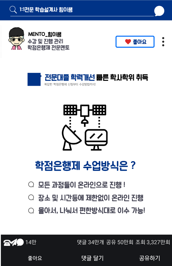 전문멘토에게 도움을 요청해서 전문대졸 학력개선 과정에